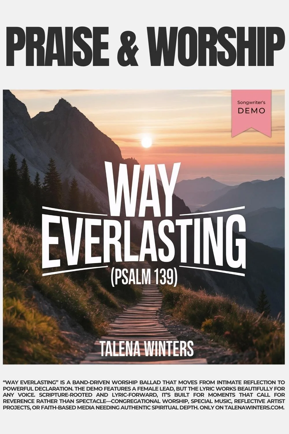 βWay Everlastingβ is a band-driven worship ballad that moves from intimate reflection to powerful declaration. The demo features a female lead, but the lyric works beautifully for any voice. Scripture-rooted and lyric-forward, itβs built for moments that call for reverence rather than spectacleβcongregational worship, special music, reflective artist projects, or faith-based media needing authentic spiritual depth.