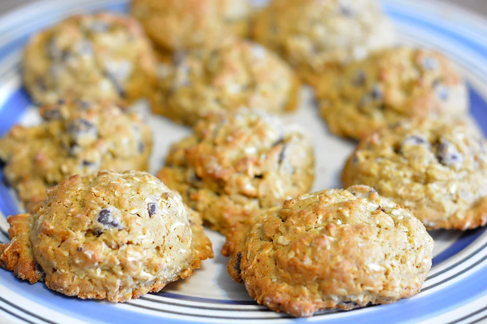 Here is my favourite cookie recipe. I like that most of the sweetness comes from the bananas and the dried fruit (or chocolate chips, if you substitute those instead.) Also, the cinnamon helps to regulate blood sugar to avoid that spike and then crash we normally get from sweets.