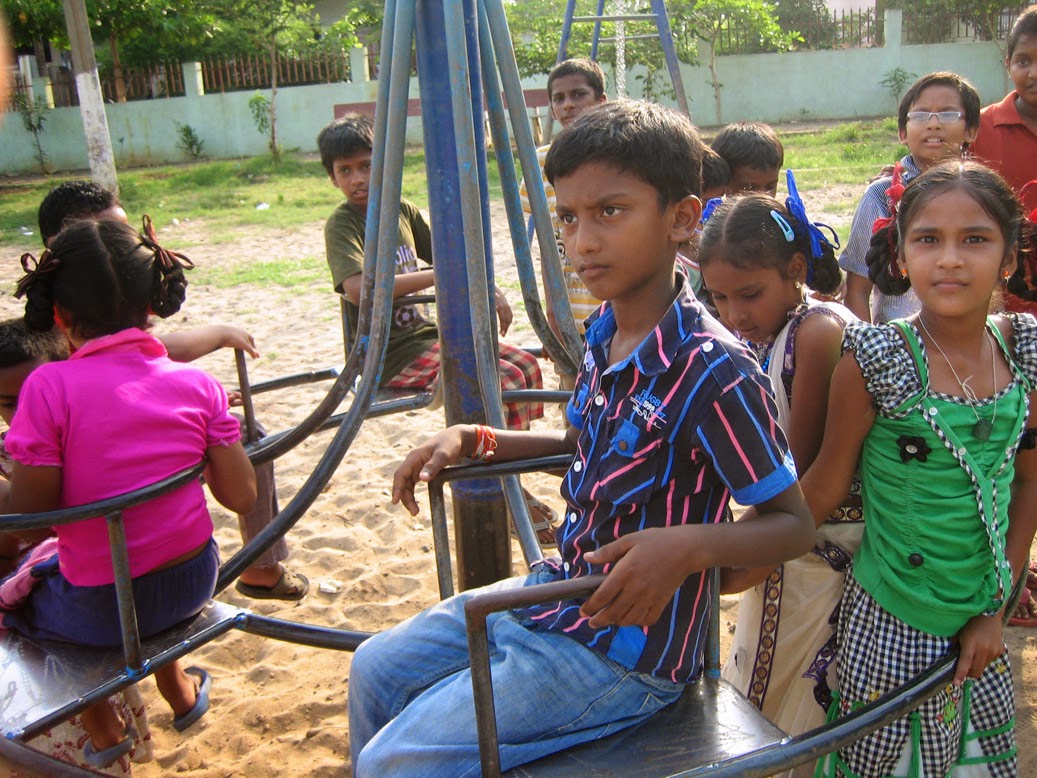 Hanging out at the playground beside Pastor Kumar's house