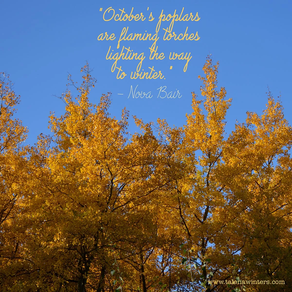 "October's poplars are flaming torches lighting the way to winter." - Nova Bair. Desktop wallpaper. 1920x1080 px resolution. More free wallpapers at www.talenawinters.com/desktop-wallpapers.