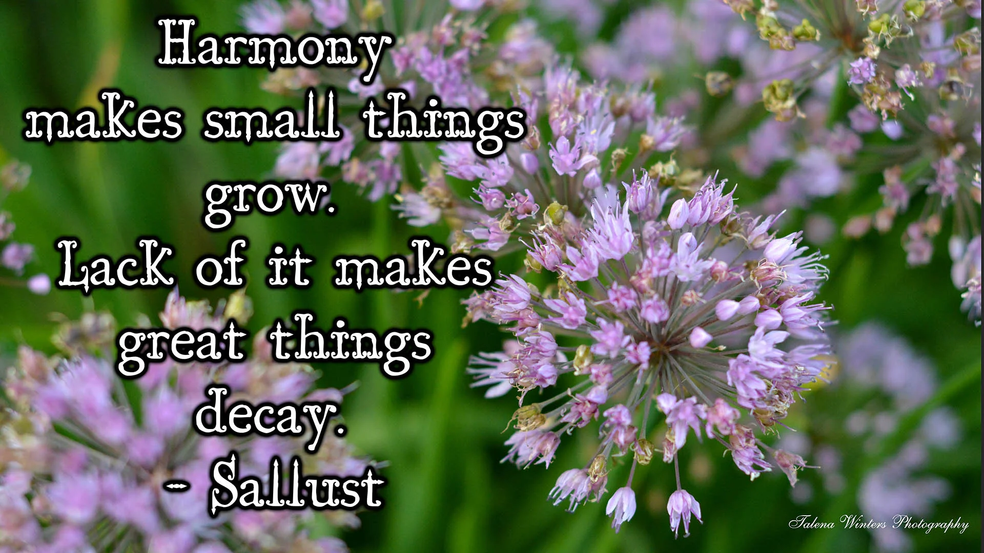 "Harmony makes small things grow. Lack of it makes great things decay." - Sallust. Desktop wallpaper, 1920 x 1080 resolution, onion flowers. More free wallpapers here.