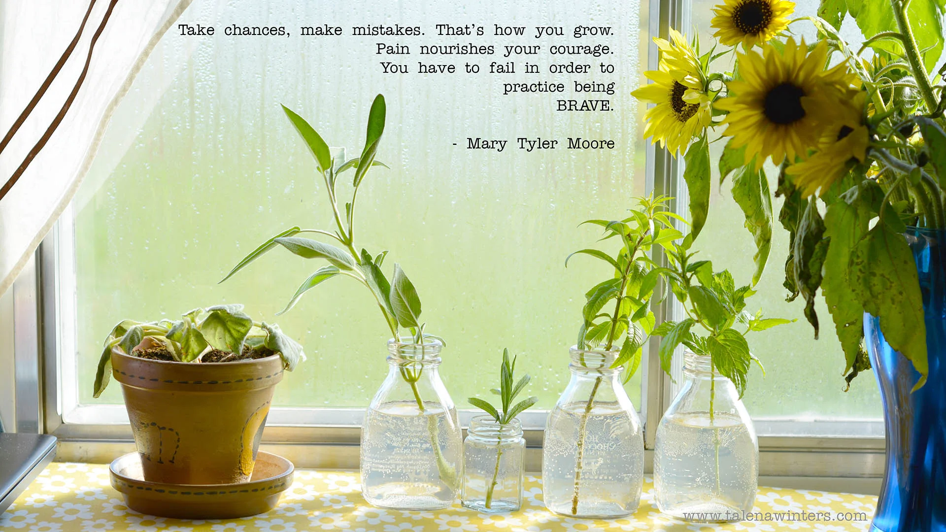 "Take chances, make mistakes. That's how you grow. Pain nourishes your courage. You have to fail in order to practice being brave." - Mary Tyler Moore. Desktop wallpaper, 1920x1080 resolution. Find more free inspirational desktop wallpapers at www.talenawinters.com/desktop-wallpapers.