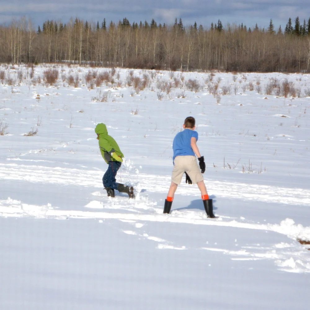 Snowball fights in Alberta. I bet DS2 was glad he was dressed more warmly than his older brother with the much better throwing arm...