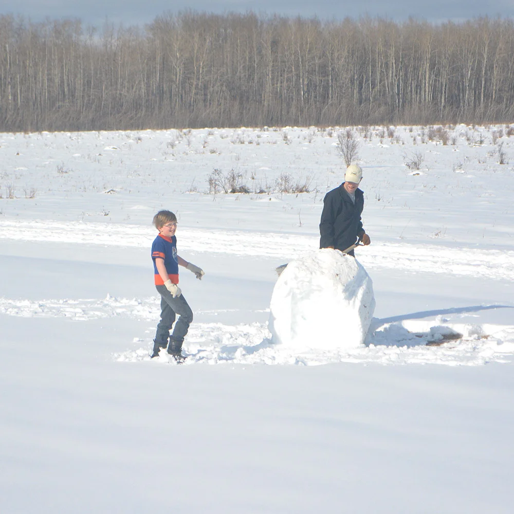 This base snowball became a ginormous seven-foot-tall snowman. Go, team Superkid!